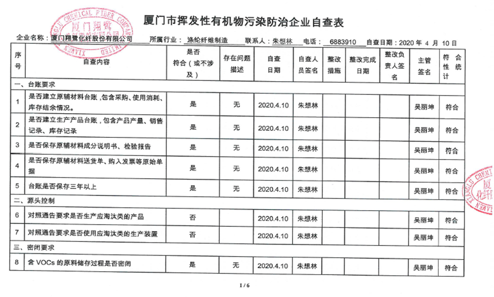 廈門市揮發(fā)性有機物污染防治企業(yè)自查表(2020年第二季度)