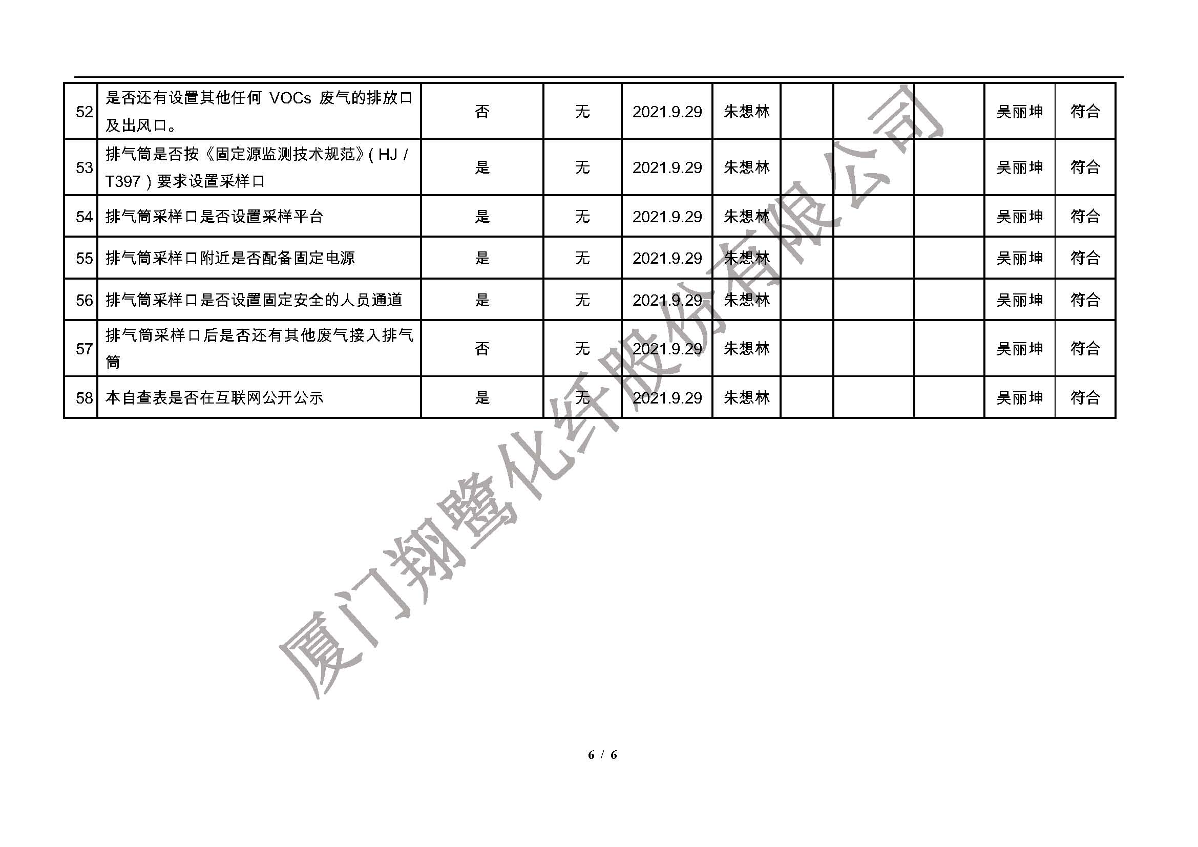 廈門市揮發(fā)性有機(jī)物污染防治企業(yè)自查表(2021年 第二季度)